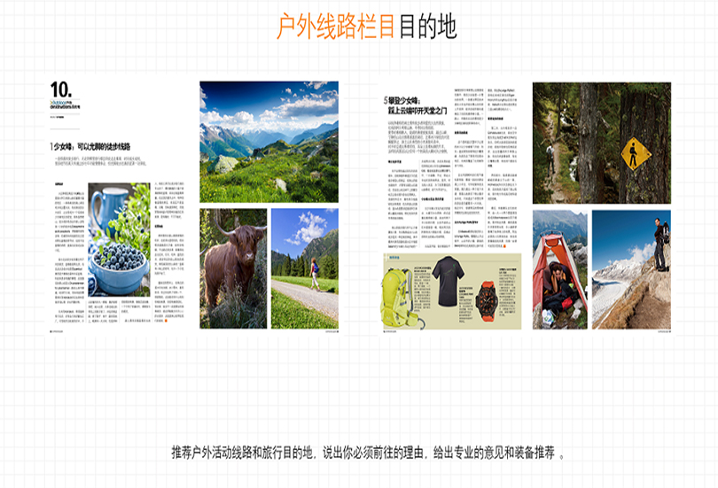 作为一本户外装备杂志,我们致力于为读者提供全面、权威的户外装备资讯。我们每期都会对市场上最新的户外产品进行评测和介绍,从帐篷、登山鞋、背包到炉具、雨具,涵盖了几乎所有户外活动所需要的装备。我们不仅提供详尽的产品介绍,还会对其性能、品质和适用场景进行评价,帮助读者选择最适合自己需求的装备。